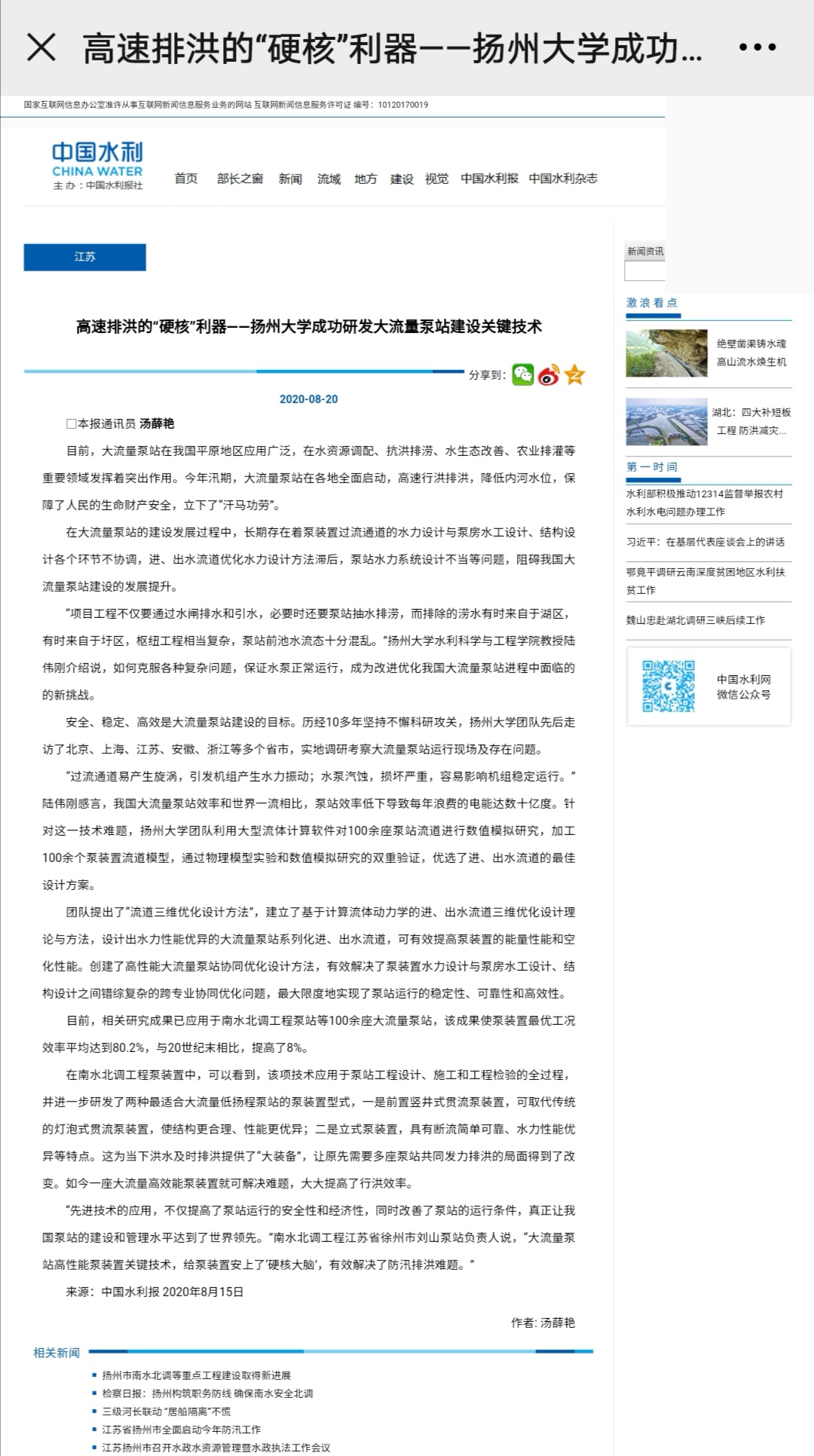 中国水利网(通讯员:汤薛艳)http://www.chinawater.com.cn/newscenter/df/js/202008/t20200820_755158.html