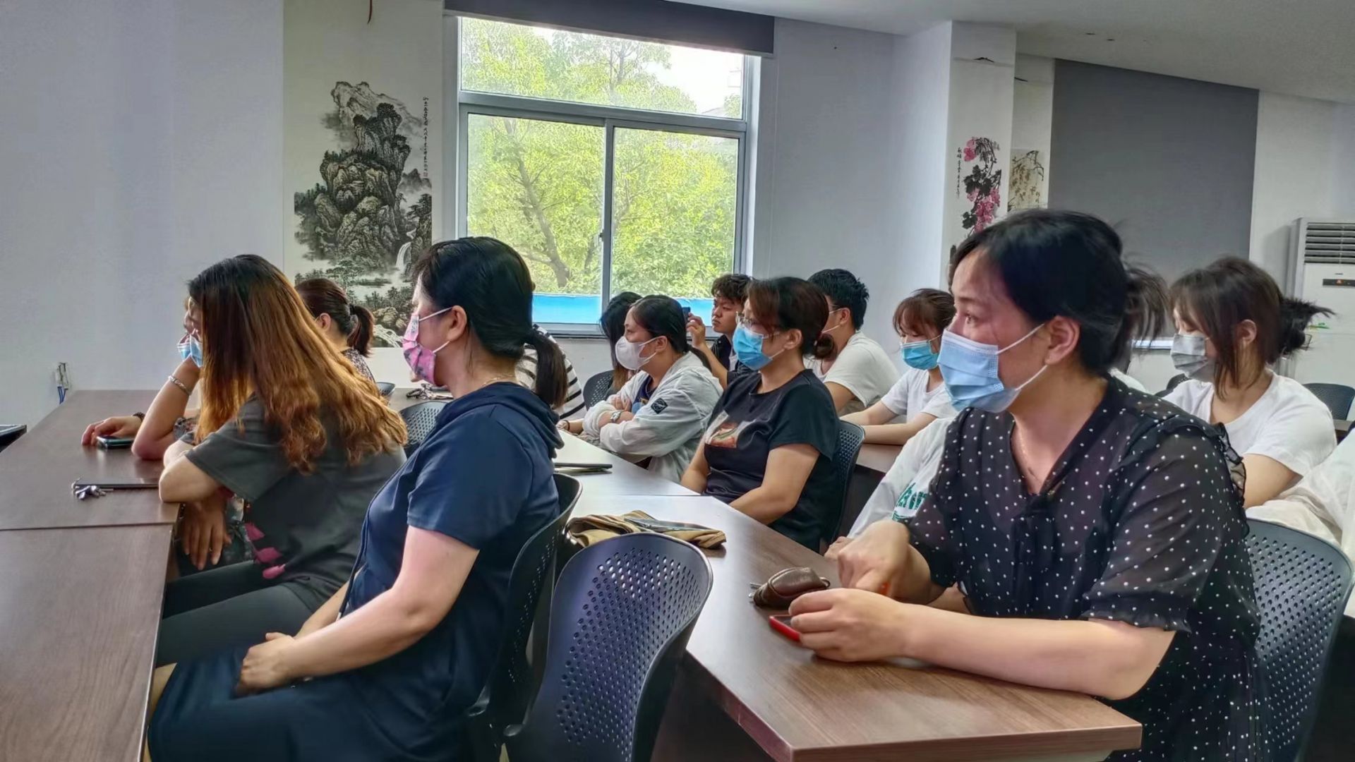虽然天气炎热,现场听讲的家长仍然坐满文扬社区会议室。